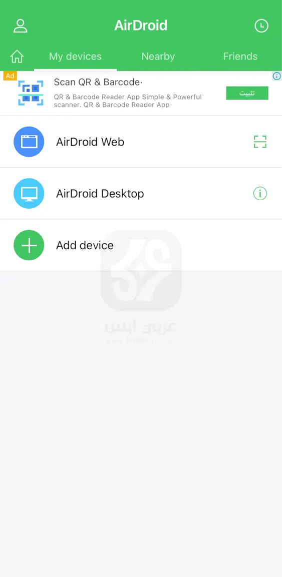 - تحميل تطبيق AirDroid للايفون 2025 يتيح لك مجموعة من الأدوات داخل الواجهة الرئيسية هنا.