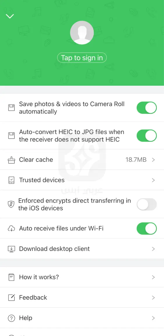 - المشاركة: باستطاعتك في الوقت الحالي نقل ملفاتك عبر الأجهزة التي تم الربط معها بالتأكيد.