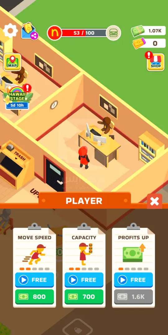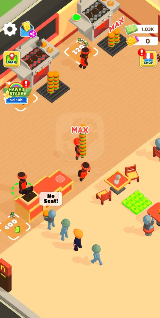 المتجر الخاص بك في الوقت الحالي وهو الأساسي بالطبع يمكن توسيعه عندما تستخدم هذا الإصدار على جوالك ولكن أيضًا باستطاعتك الاستعانة بطريقة أخرى للتوسع وهي محاولة بناء متاجر أخرى في أماكن كثيرة داخل كل الولايات المتاحة في البلد والاعتماد على مثل هذه الأمور سوف تستفاد منها كثيرًا إذا كنت من محبين عملية التوسع في كافة الألعاب ومن ضمنهم تنزيل لعبة Burger Please APK 2025.