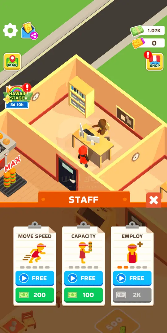 - تحميل لعبة Burger Please 2025 للاندرويد تحتاج منك أيضًا محاولة تطوير الموظفين.