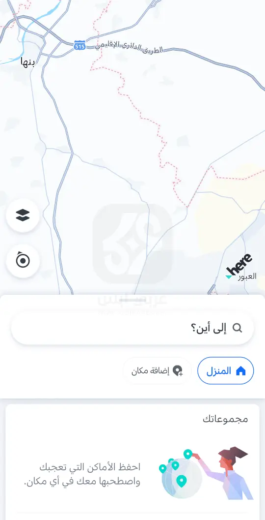 - التوجيه: في أعلى شاشة تطبيق HERE WeGo 2025 ستجد المزيد من الإرشادات تستخدمها.