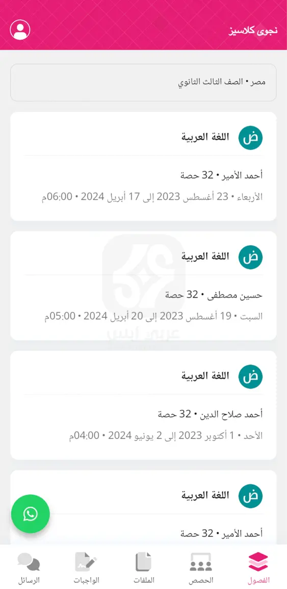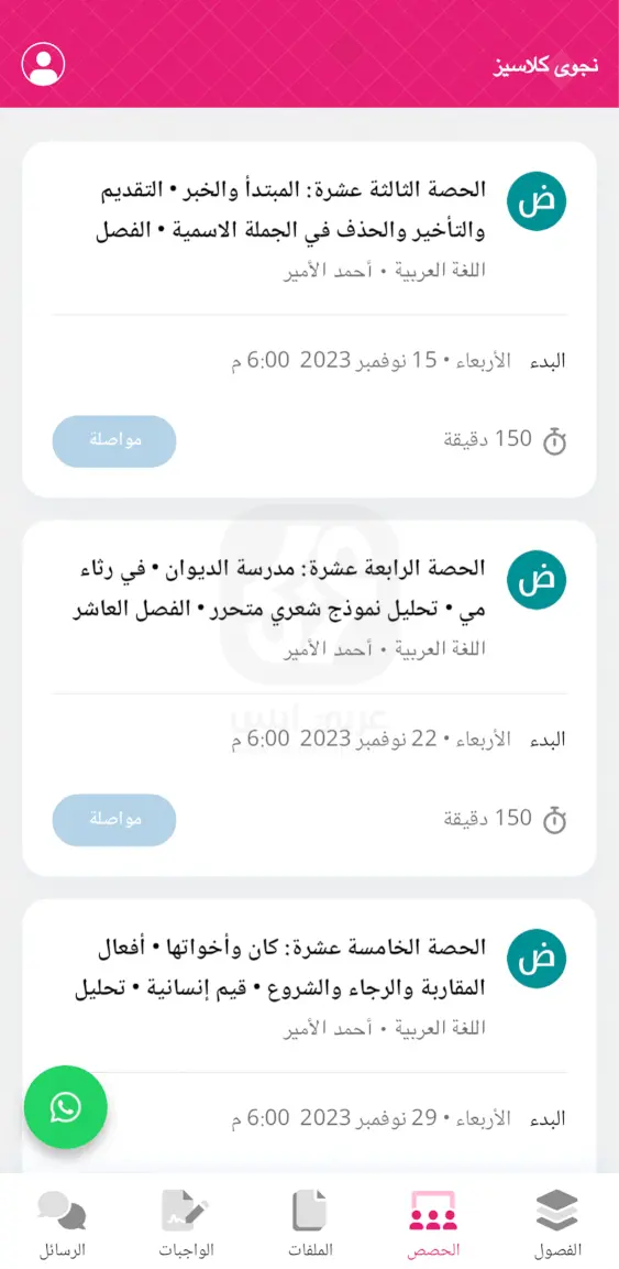 - الحصص: بإمكانك الآن من تطبيق Nagwa Classes للايفون 2025 الدخول إلى كل الحصص هنا.