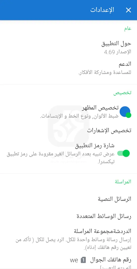 - يمكنك تغيير (شكل الفقاعة) المسئولة عن عرض الرسائل داخلها من الإعدادات العامة هنا.